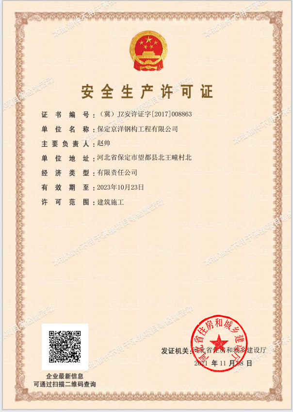 保定京洋鋼構工程有限公司位于千年古縣望都。望都縣處于京津冀核心區,是對接京津的交通要塞。距北京180公里,天津170公里,石家莊機場70公里。京石高鐵、京廣鐵路、京港澳高速、107國道四條交通大動脈縱貫全縣。圍繞望都南北各一座高鐵站,定州站(30公里)和保定站(35公里)。京昆高速、保阜高速均有連接線,四條省級公路縱橫交錯,交通便捷。